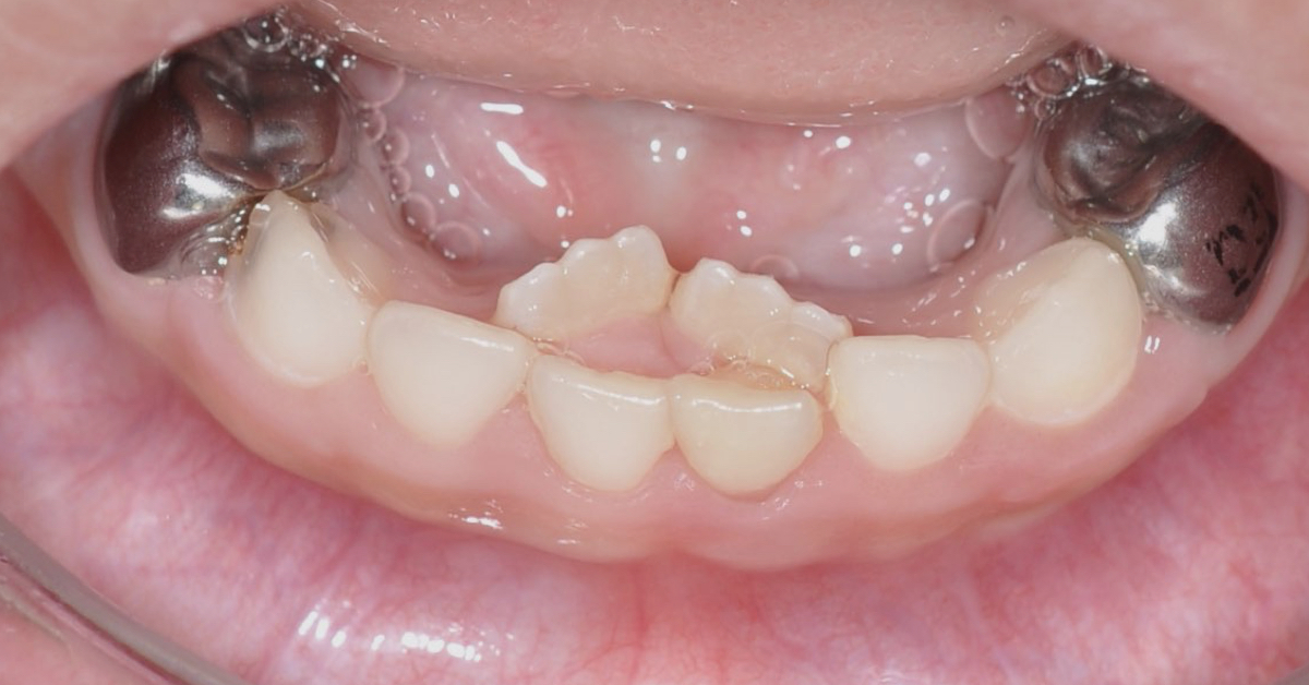 我一檢查,下排門牙的內側面有兩顆新牙齒冒出頭。